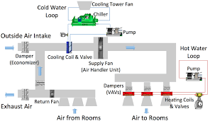 In HVAC, a chiller is a machine that cools a liquid, usually water, which is then pumped through a building to provide air conditioning. It is the central component of a large-scale air conditioning system, removing heat from the liquid using a refrigeration cycle and then dissipating that heat to the outside air.